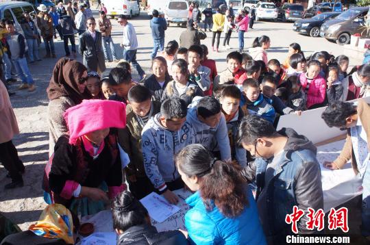圖為民眾舉行簽名保護(hù)瀘沽湖活動(dòng)。 丹山姆 攝